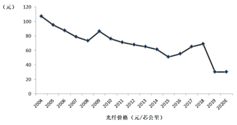因为光纤的基础材料为二氧化硅(SiO2),这种原料十分丰富,可以说取之不尽用之不竭。光纤生产的成本主要与技术门槛和设备投资有关;随着我国光纤生产企业逐步掌握了光纤生产的全流程技术,光纤生产成本已从最高时的1200元/芯公里下降到10~20元/芯公里了。