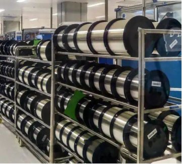 生产好的光纤预制棒被运送到光纤拉丝塔拉制成光纤(新型高速拉丝塔高达30多米)。