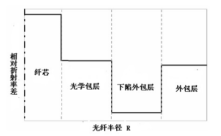 如图,通过纤芯层外围设置下陷包层,可以有效降低弯曲损耗,提高光纤的抗弯性能。