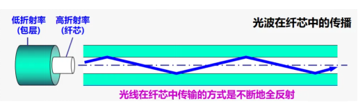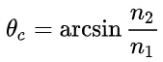 如图,n1是较高密度介质(纤芯)的折射率,n2是较低密度介质(包层)的折射率,临界角(θc)的计算公式如下: