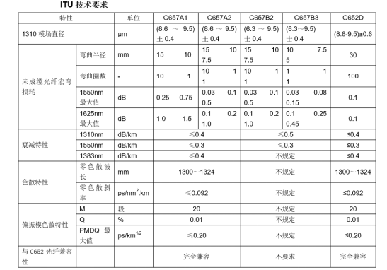 随着光纤到户(FTTH)技术的普及和光纤到桌面(FTTD)技术的兴起,市场对弯曲不敏感光纤的需求十分强烈,为此,国际电信联盟电信标准分局(ITU-T)制定了适合于室内布线使用要求的G.657 A1/A2/B2/B3系列单模光纤产品,其中当前被广泛应用于室内布线的光纤产品主要是G.657A1/A2光纤。