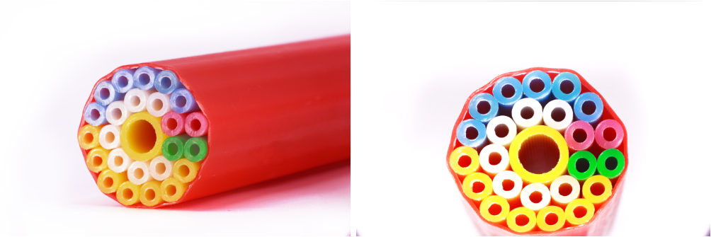 将一孔或数孔微管按照一定的方式排列组合,外层包覆聚乙烯护套,构成集束管,可以在有限的空间内容纳更多的管孔数量。
