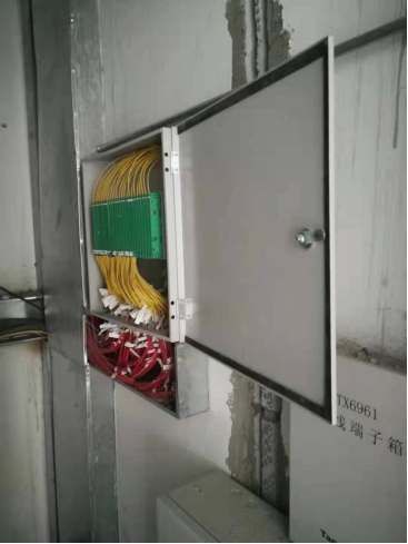 楼层弱电间设置光纤直熔箱(如图),用于纵向微缆和横向微缆的连接。