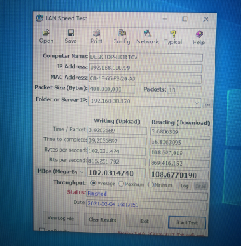 根据我们在湖北省中西医结合医院及其他多个实际工程案例的实测结果,86面板型ONU的下载速度均能超过800Mbps(100Mbyte/s)(如图),能充分保障海量医学影像的上传与下载。